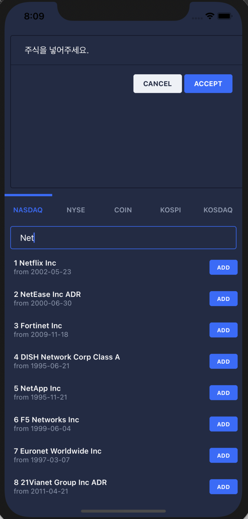 - 주식 검색 바 추가