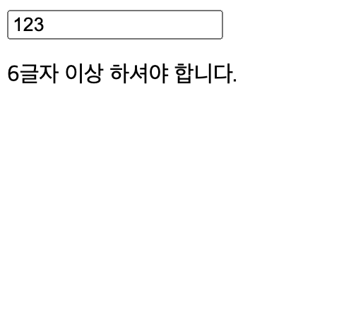 <p>{valid ? "유효한 텍스트입니다." : "6글자 이상 하셔야 합니다."}</p>